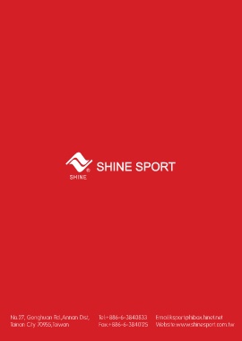 SHINE SPORT No.27, Gonghuan Rd.,Annan Dist, Tel:+886-6-3840833 Email:ksport@hibox.hinet.net Tainan City 70955,Taiwan Fax:+886-6-3840125 Website:www.shinesport.com.tw